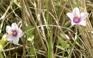We met with the purpose of elevating the post-2000 score for the hectad with what we could find on a recently created community woodland developed over the gas storage facility by Scottish and Southern Energy and Statoil. We found the field layer already closed with naturally-occurring species appearing as singleton 'casuals' within expanses of Yorkshire Fog, commercial seed-mix fescues and rye-grasses. An interesting find was the blue, spreading meadow-grass Poa humilis, now Poa pratensis subspecies irrigata, which has hitherto been recorded as a denizen of the tops of old brick walls and very recently as a constituent of lawn turf. A large pond provided likelihood of adding some submerged and marginal species, which it did. However, we suspect that most of them had been planted. Discussion huddles were few but interesting, for example, as we looked at a pink form of Scarlet Pimpernel (above); at a single spike of Northern Marsh Orchid; critically examined Jointed Rush and compared Juncus effusus var. compactus with Juncus conglomeratus. St Michael produced marks but few sparks and at the point at which we started to compare and contrast natural variation in the stem colour of creeping thistles we thought it better to move on.
