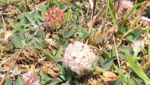 In view of the intense heat a somewhat relaxed approach was taken to the recording on Saturday when a small group strolled around looking at the "big picture". We were most impressed by the varied Atriplex garden (noted earlier by Peter) that has developed at the north west end of the recent breach to the peninsular. Here large quantities of mobile sand have been washed over what was previously rather rank vegetation. A luxuriant growth of fresh Atriplex littoralis, A. prostrata, A. laciniata and A. portulacoides now covers the area, along with seedlings of Salsola kali and other nice halophytes. The highlight of the afternoon followed a tip-off from Kate Wright who, that morning, had found Trifolium fragiferum near the pond area in Clubley’s field. We were rewarded not only with a fine display of Strawberry Clover(above) but also with abundant Juncus gerardii, Carex extensa and C. distans supported by occasional plants of Ranunculus sardous.